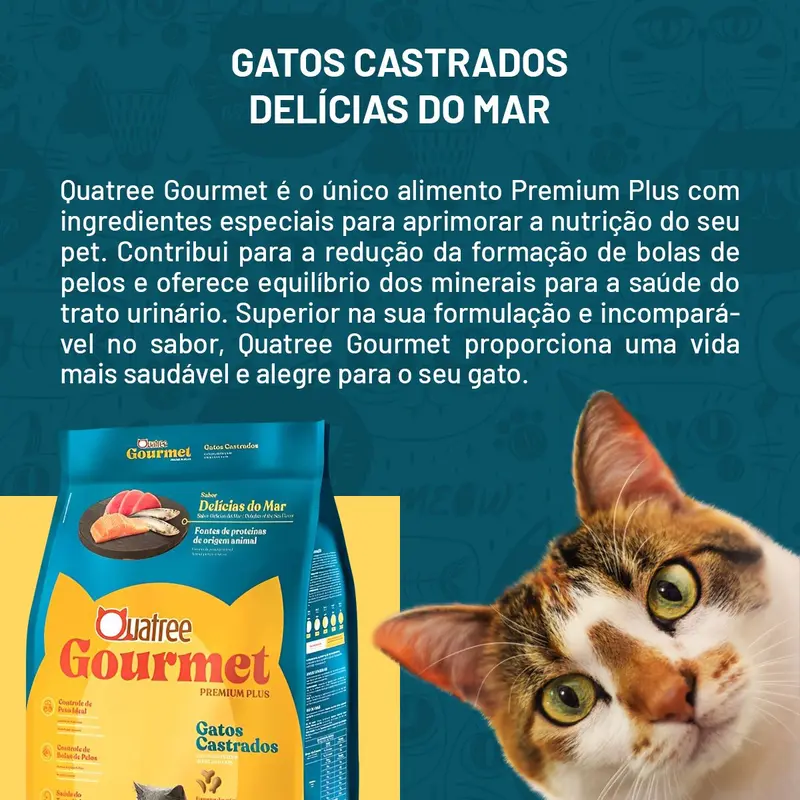 #QuatreeGourmet #GatoCastrado #SaúdeUrinária #RaçãoPremium #ControleDePeso #NutriçãoFelinina #DelíciasDoMar #PetLifeBH #GatosFelizes