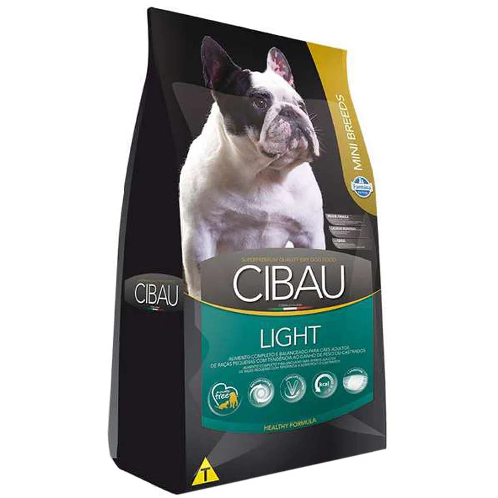 Ração Cibau Light Mini Breeds 3kg é um alimento completo e balanceado para cães adultos de raças pequenas com tendência ao ganho de peso e castrados.