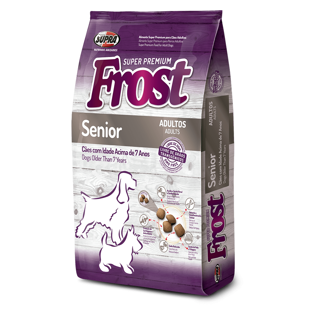 Ração Frost Adult Senior Cães Adultos Todas as Raças é um alimento super premium para cães de todas as raças com idade a partir de 7 anos. Com formato e textura adaptados especialmente para cães idosos, facilitando a absorção e mastigação. Com antioxidantes naturais que contribuem no retardo do envelhecimento celular.