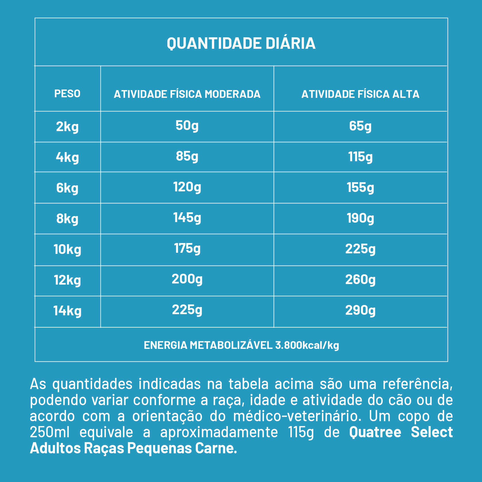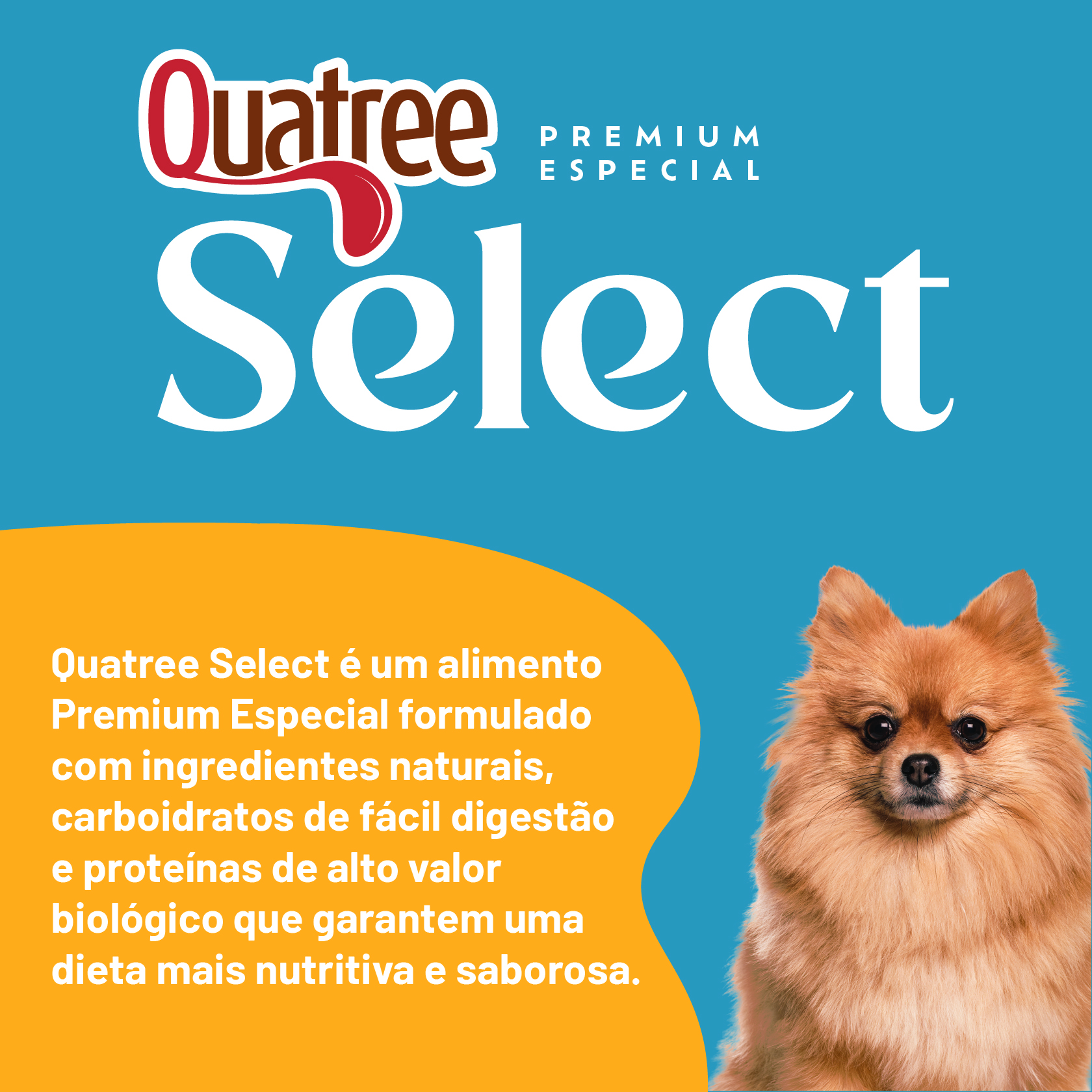 Saiba mais sobre a Ração Quatree Select para Raças Pequenas: Link para mais informações