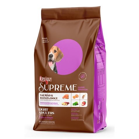 A Ração Quatree Supreme Light é um alimento Super Premium ideal para cães com tendência a engordar, castrados ou com baixa atividade física. Formulada com proteínas selecionadas e ingredientes naturais, ela promove fácil digestão e absorção de nutrientes. Seu diferencial é o uso de conservantes 100% naturais e a ausência de transgênicos, garantindo uma alimentação mais saudável e balanceada para seu pet.